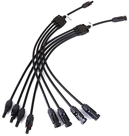 These extended 4 to 1 Solar Branch connections make connecting parallel solar panels a snap. These connections, which are most appropriate for 400W kits, let you install panels in either portrait or landscape orientations without having to deal with unsightly cables. Packages are delivered in pairs.